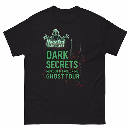 From Haunted Nashville ghost gear to Nashville Tours pride pieces, every item tells a story (one you were a part of, or one you wish you were.) Our merch isn’t just about looking good (though you will), it’s about carrying a piece of the legend home with you.